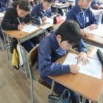5校時の図工で模写をやりました。 今回は「鳥獣人物戯画」の模写をしました。 前回と違い、模写するものが2つだったり、絵の向きが横向きだったりしたので、苦労している児童もいましたが、集中して取り組むことができました。