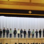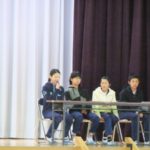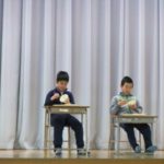 放送委員会による児童集会が行われました。 普段、仕事をしている様子を劇風にして表現していました。 「すがすがしい朝を迎えることができるように」朝の放送を、「時間通りに動くことができるように」休み時間の放送を行っていることについて、委員長さんから説明がありました。 普段は声しか聞くことのない放送委員会ですが、今日は委員会のメンバーの顔を見て話を聞くことができた機会でした。