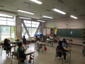 5月21日(木)、5月22日(金)と分散授業があり、1年生は初めての給食を食べました。 自分の顔の半分ほどあるパンでしたが、「おいしい♪」と言いながらペロリと食べてしまいました。 通常の給食が始まるのも楽しみにしていてください!
