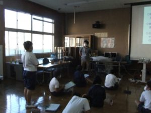 10月14日(木)に埼玉県立自然の博物館の山岡勇太学芸員さんを講師にお招きし、古秩父湾の出前授業をしていただきました。 町内の身近な新田橋に国指定天然記念物の地層があることを知り、それが古秩父湾の終焉を示していることがわかると、子供たちの心は今から何千万年も前にタイムトラベルしていました。 週末には化石を探す子供たちが増えるかもしれません。 授業で学んだことをさらに深めることのできた1時間でした。