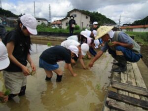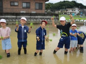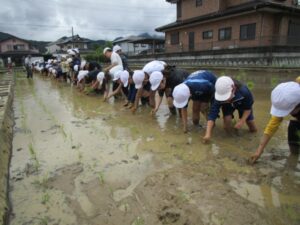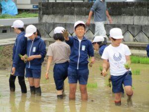 そして、田植えをしました。 名人さんに田植えのコツを丁寧に教えてもらいながら、しっかり植えることができました。 秋には大きく育った稲を収穫できるのが今から楽しみです。