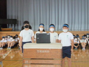 本日全校朝会があり、児童会が中心となり、仲よし体育祭壮行会が行われました。 それぞれの競技ごとに、6年生から気合いの入った目標と決意表明がありました。 在校生からは、リモートを通して拍手でエールを送りました。 児童会、そして在校生のみなさんのエールを6年生はしっかりと受け取り、 6年生は横瀬小学校の看板を背負い、真剣に競技に取り組んできます。 練習の成果を十分に発揮して、悔いのない時間を過ごしてほしいと思います。 横瀬小学校6年生の皆さん、頑張ってください!!