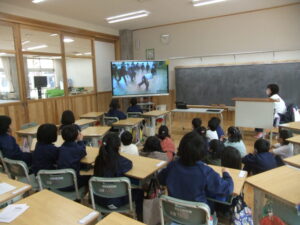 6年生は、1年生からもらったペンダントを身につけながら、嬉しそうに動画を見ていました。