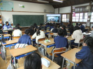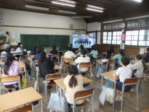 在校生も、楽しい動画に笑ったり、6年生へのメッセージを真剣に聞いたりしていました。