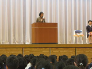 今日は離任式が行われました。 転退職された先生方に心のこもった手紙や花束をプレゼントをしました。 全校で4年ぶりの校歌を歌い、懐かしさと迫力に感動していました。 そして、お別れの会では久々に会う先生方に一人一人が感謝の気持ちを伝えることができました。