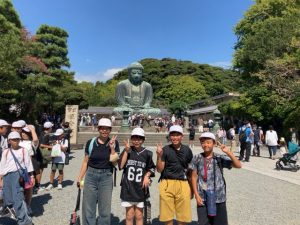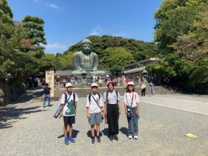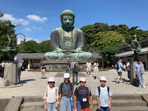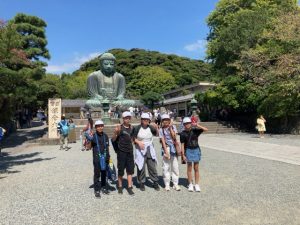 高徳院の大仏の前で記念記念撮影です これから、班別に鎌倉の町を散策します。