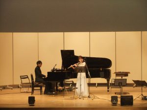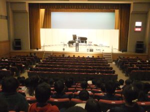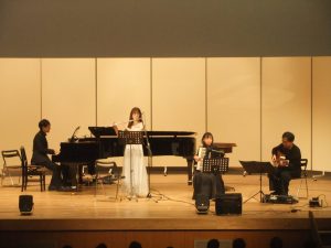 横瀬町民会館で音楽鑑賞会が行われました。フルート&キーボードユニット「はづるこ」の黒沢梢様(フルート)・大塚治一様(ピアノ)、清水悠様(ギター)、清水沙也果様(アコーディオン)をお招きし、素敵な演奏をしていただきました。楽器紹介や世界の様々な音楽を演奏してくださり、生演奏を聴く貴重な体験となり、素敵な時間となりました。
