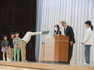 令和6年度修了式が行われました。 1年でみんなたくさん成長し、校長先生からしっかりと修了証もいただくことができました。 楽しく正しく春休みを過ごして、4月に元気な皆さんに会えることを楽しみにしています。 修了、おめでとうございます。