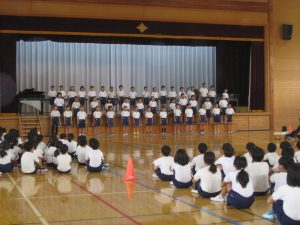 今日は4年生による音楽朝会でした。 合奏「スーパーカリフラジリスティックエクスピアリドーシャス」と合唱「チャレンジ!」ともに素晴らしかったです。本番に向けてみんなで練習してきた成果が表れていました。