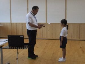 本日、硬筆展における表彰朝会が行われました。 埼玉県の展覧会に出品された5名の児童が代表で、校長先生から賞状をいただきました。 横瀬小学校のみんながとてもよく頑張り、字を上手に書くための集中力や努力を身に付けることができたと思います。 冬には、かきぞめ展もあります。 今回身に付けたことを、これからの学習に活かしていってほしいと思います。 とてもよく頑張ったお子さんへ、保護者の方からもお声がけしていただけたらと思います。