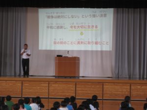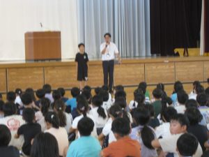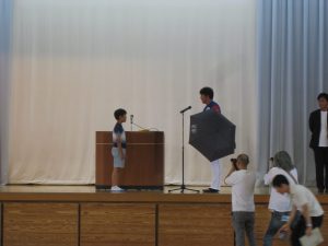 今日から2学期がスタートしました。 6年生に新たなお友だちを迎えてのスタートとなりました。 始業式の前には「埼玉武蔵ヒートベアーズ」から全校児童へ日傘の贈呈がありました。まだまだ厳しい残暑が続きます。いただいた日傘を有効に使用していただけると嬉しいです。 さて、始業式では校長先生から戦後80年という節目の年を迎えるにあたり、平和な日常は当たり前ではないというお話をいただきました。2学期、「平和に感謝し、今を大事にして新たなことにチャレンジする」を合言葉にして頑張っていきましょう。