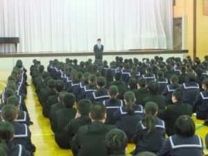 始業式が行われ3学期が始まりました。その後全校ガイダンスが行われました。始業式では学校長から「目標をもって生活しよう」というお話、生徒指導主任からは「1年間のまとめの学期と同時に次学年への準備の学期です」というお話がありました。ぜひ、充実した日々を送っていければと思います。