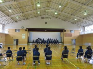 10月21日、2年生が学活の時間に体育館で合唱リハーサルを行いました。今日は当日の立ち位置や動きを確認し、実際に歌いました。本番は一発勝負です。最初から最高の歌声となるよう、残りの期間も一所懸命練習に励みましょう。