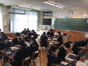 3年生の公民の授業では、地方自治について学んでいます。今回は、そのまとめである「S市の市長になって条例をつくろう」を行いました。S市の課題や住民の声を分析。優先するべき課題を決定し、それを解決するための条例を作成しました。一部を紹介すると「地域の魅力フリー素材条例」「子育て・介護安心条例」「市民協力ボランティア条例」などです。これらの条例の制定によって出てくる課題についても考えました。次回は横瀬町の条例についても考えていく予定です。