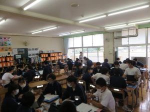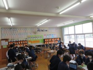 3学年では、修学旅行に向けた準備が始まっています。今日は、班ごとに京都で見学する場所を話し合いで決めていました。どのような場所を見学するのか、うまく計画がたてられるといいですね。みなさん楽しそうに決めていました。