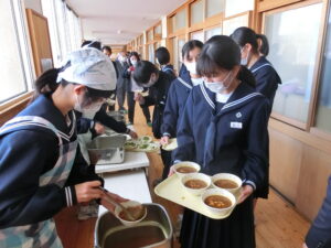 11月24日、埼玉西武ライオンズと横瀬町で『LIONS FRIENDLY CITY(ライオンズ フレンド シティ)協定』を結んでいる関係で、埼玉西武ライオンズ全面協力のもと、実際に選手寮で食べられている門外不出の若獅子カレーが給食に出ました。生徒達は選手や調理員の皆様からのメッセージ動画を観ながら、おいしそうに食べていました。ごちそうさまでした。