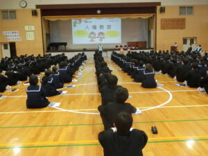 11月30日、人権教室がありました。「いじめ」をテーマとして、人権擁護委員横瀬部会の皆様に「人権」に関する話をして頂いた後にDVD『リスペクト アザース』を視聴し、人権についての理解を深めることができました。