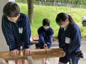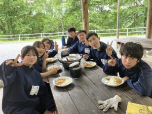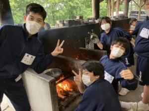 大滝元気プラザに着きました。これから体験学習として薪割り体験をします。それが終わったらカレー作り、そして、キャンプファイヤーです。どれもしっかりとした態度で臨めています。キャンプファイヤーではとても盛り上がり、最高の思い出ができました。