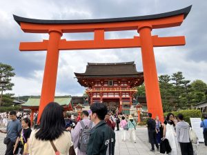 今日の最終目的地の伏見稲荷大社になります。まだ子供たちは到着していませんが、頑張って1日見学してくることができたことでしょう!ここで学んだことをいかしていけるようにできるといいですね!