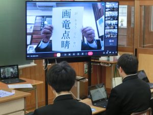 3月3日(月)の朝の時間に、リモートによる全校朝会を行いました。 3月を迎え、3年生は卒業を、1、2年生は進級を控える時期となりました。 そのことを踏まえて、校長先生から「画竜点睛(がりょうてんせい)」のお話がありました。 この故事成語には、「物事の完成のために、最後に加える大切な仕上げ」という意味があります。 本日を含めて、3年生が登校するのも、あと10日となりました。 横中生みんなで、画竜点睛のとおり、今年1年間を締めくくるための仕上げをしていきましょう。